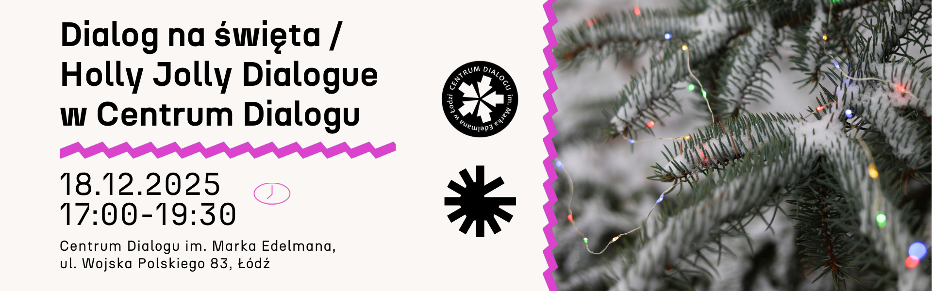 Zapraszamy na popołudnie poświęcone świeckim, ludowym tradycjom świątecznym wypełnione muzyką, warsztatami i opowieścią - „DIALOG NA ŚWIĘTA". Wydarzenie ma charakter międzypokoleniowy i międzykulturowy. Szczególnie zapraszamy do udziału osoby, które od niedawna mieszkają w naszym kraju i chciałyby poznać polskie zwyczaje świąteczne w przyjaznej, ciepłej atmosferze. Już 18 grudnia 2025 r. (czwartek) od godz, 17:00 w Centrum Dialogu im. Marka Edelmana w Łodzi, ul. Wojska Polskiego 83.