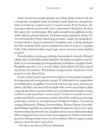 kultury. Ale Edzia, tak samo jak Paweł, kpiła sobie z nowoczesnej kultury, kpiła