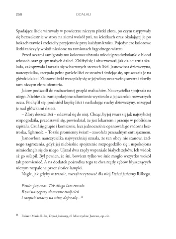 – Złoty deszcz liści – odezwał się do niej. Chcąc, by jej twarz się jak najszybciej